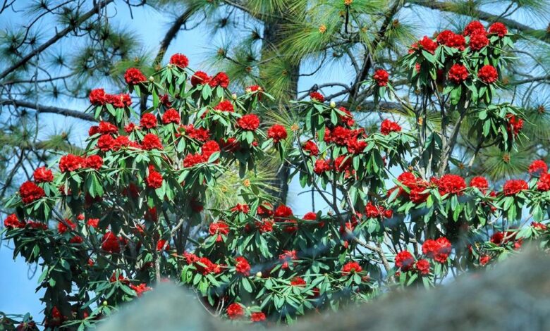 सल्यानका डाँडापाखामा ढकमक्क लाली गुराँस