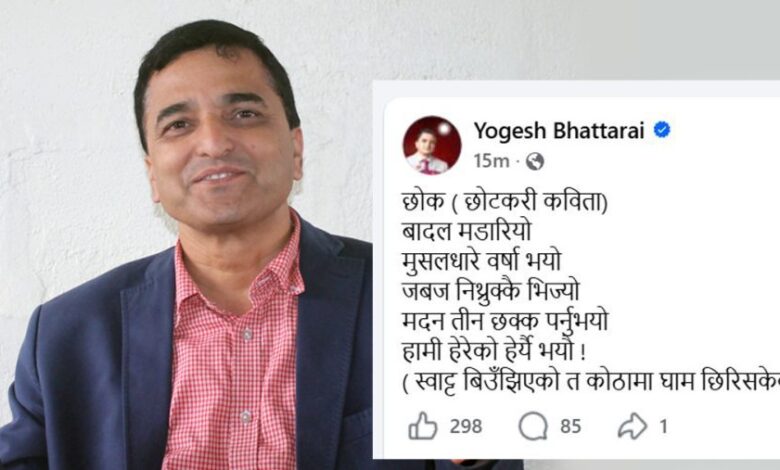 २६ चैत, काठमाडौं । एमालेका कार्यवाहक अध्यक्ष रामबहादुर थापा बादलले संसदमा दिएको अभिव्यक्तिका कारण आन्तरिक विवाद साम्य नभइरहेका बेला उपमहासचिव योगेश भट्टराईले व्यंग्यात्मक शैलीमा कविता लेखेका छन् ।