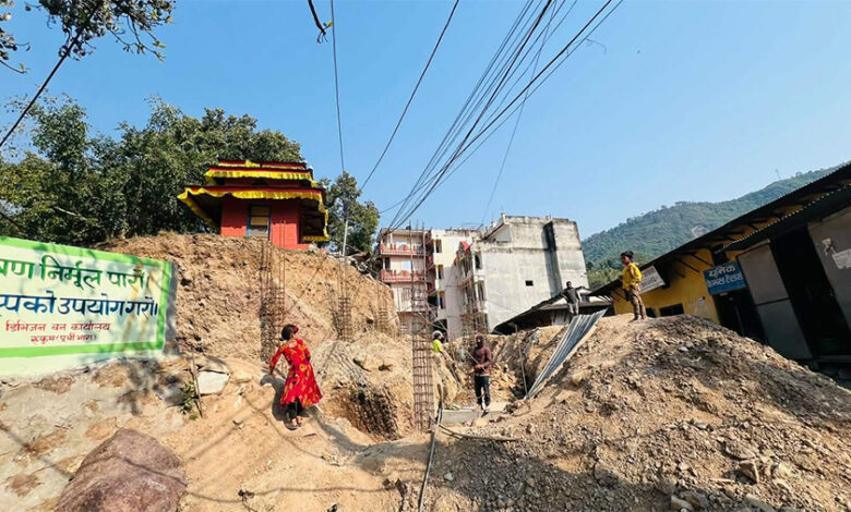 रुकुमपूर्वमा सडक मिचेर मन्दिर परिसरमा संरचना बनाउन थालेपछि विवाद